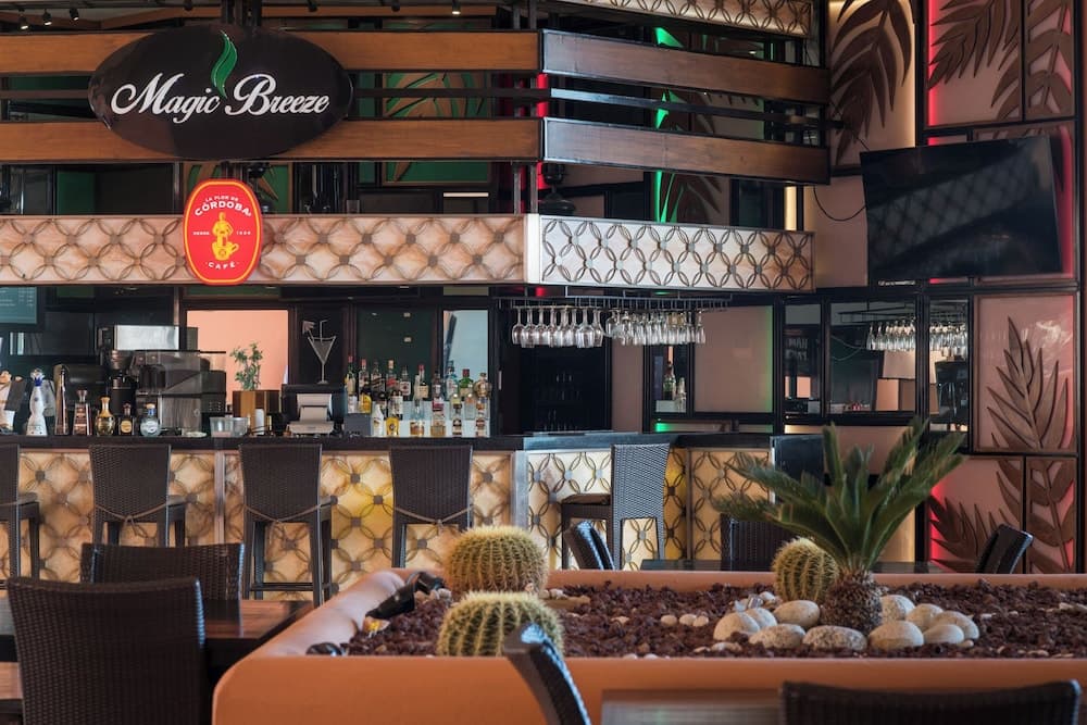 Degusta algo de cocina local e internacional en Inizio, uno de los 2 restaurantes de este hotel. El alojamiento también te ofrece servicio de habitaciones con horario limitado y una cafetería. Si necesitas un buen refresco puedes elegir entre el bar en la piscina, 2 bares con salón y 2 bares junto a la piscina. Se ofrece un desayuno bufé todos los días de 07:00 a 11:30 con un coste adicional.